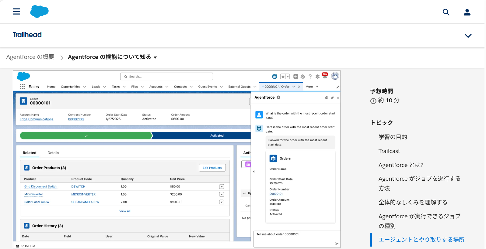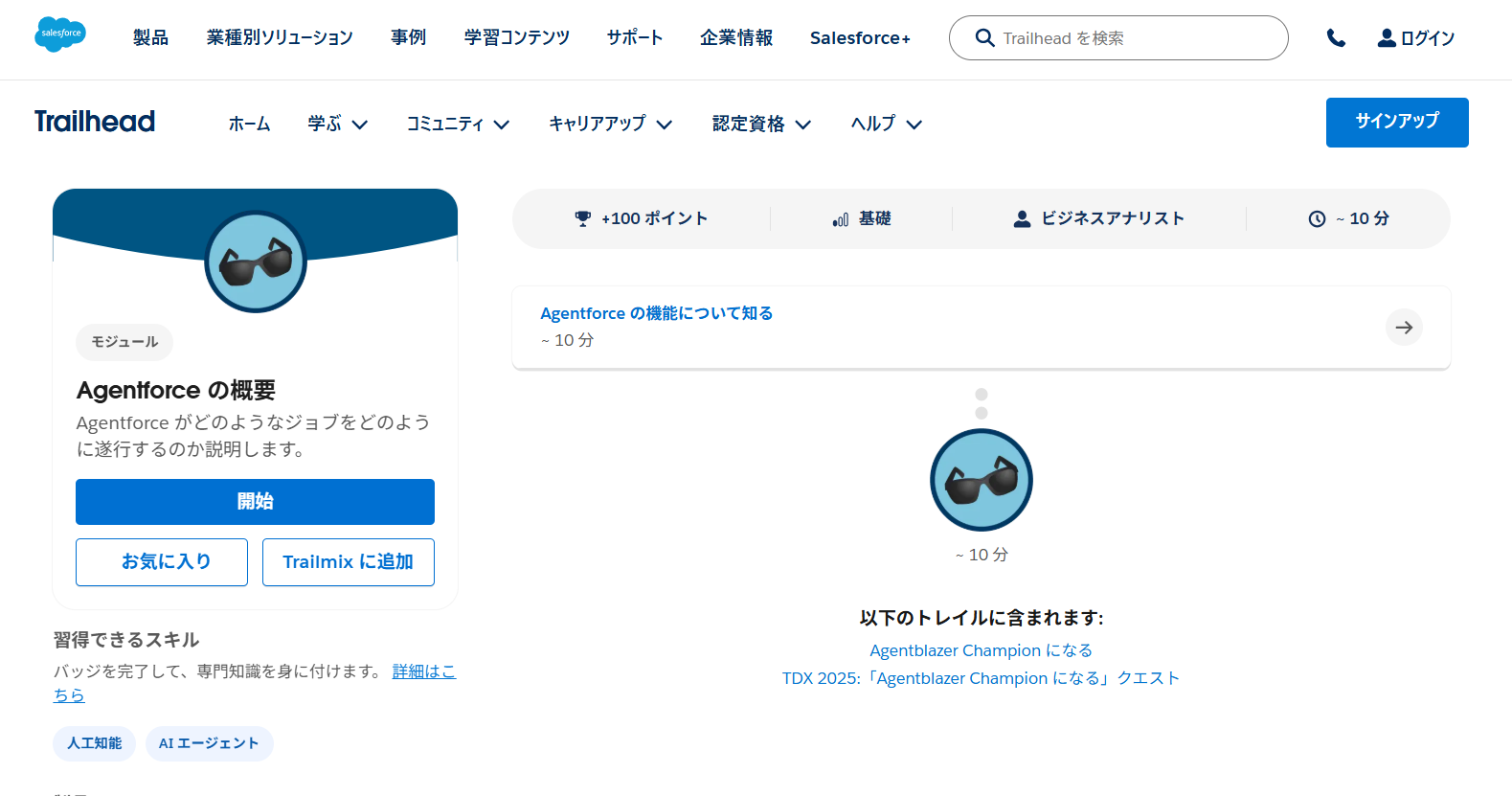 この Trailheadは「トレイル」と呼ばれる実践的な課題を段階的に進めていくゲームのような構成で、Salesforce製品に初めて触れる場合でも体感的に理解しやすい内容となっています。